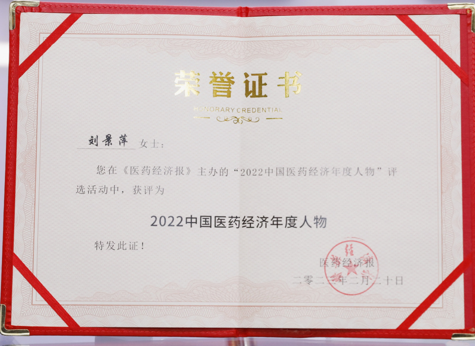 尊龙卡Z6药业集团董事长刘景萍当选“2022中国医药经济年度人物”